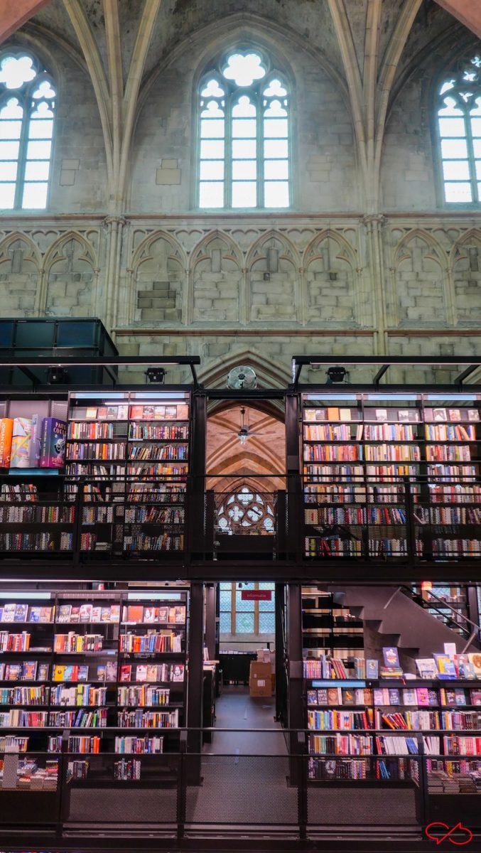Restauratie in 2005-2006. Toen ingericht als boekhandel. Boekenflats in plaats van boekenkasten. De flats staan los van de wanden en pilaren. In de apsis is een koffiegelegenheid, er hangt een enorme ronde lamp. Aan een muur hangt een banier met daarop een toepasselijk gedicht. De tekst staat bij de foto.