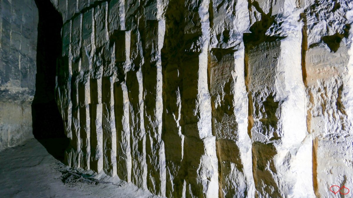 Verder wat sfeerfoto’s van de gangen. Die gangen zijn ontstaan doordat blokbrekers grote blokken mergel hebben uitgezaagd. Die waren nodig voor de bouw en de beeldhouwkunst. Het mergelpoeder was een meststof voor op het land.
