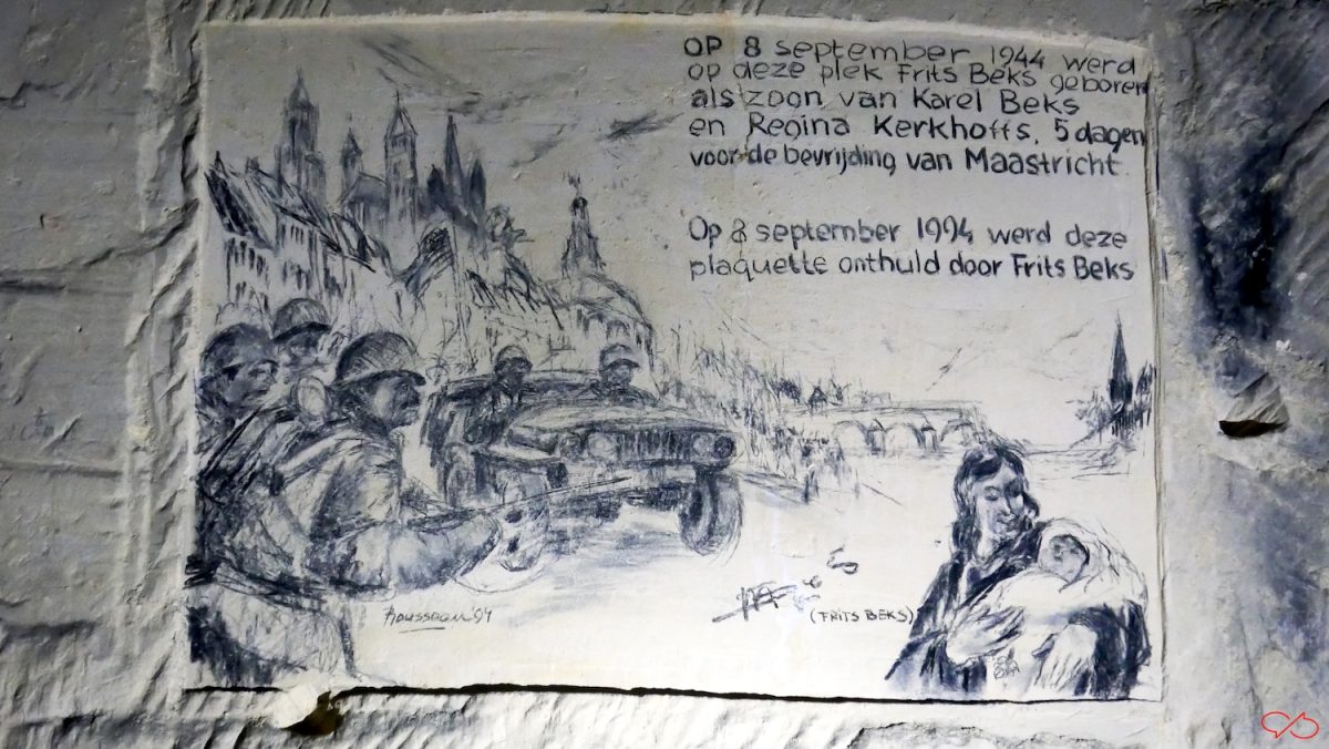 In tijden van oorlog werden de gangen gebruikt als schuilplaats. Mensen verbleven hier, soms voor langere tijd. Er zijn allerlei voorzieningen voor gemaakt. Grote reservoirs voor drinkwater, een bakkerij, slaapplaatsen, een kapel. Op 8 september 1944 is er zelfs een kind geboren: Frits Beks. Hij en zijn moeder mochten in de buurt van de bakkerij blijven, lekker warm.