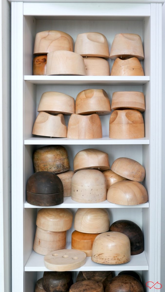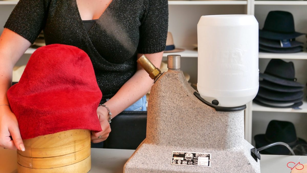 De hoeden worden gemaakt op een houten mal die precies de juiste vorm heeft. De stof wordt gestoomd om de vezels soepel te maken. Dan wordt de stof over de mal getrokken. Na drogen behoudt de hoed z’n vorm.