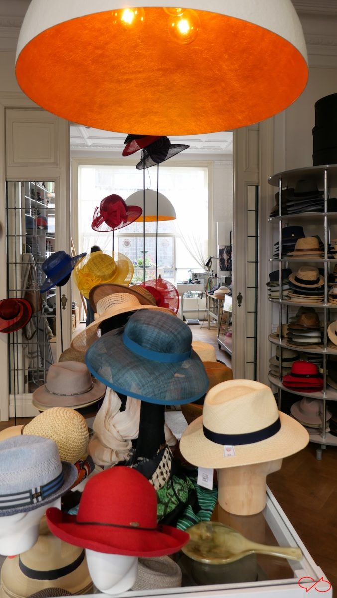 Dat atelier ligt in de Cortenstraat 1a achter een prachtige entree. Door de ramen kan men zien dat hier hoofddeksels gemaakt worden. Hoeden en petten, voor dames en heren, maar ook tassen en vilt design.
