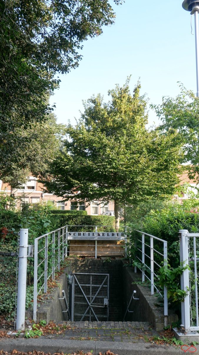 Museum Schuilen in Maastricht… In Blauwdorp ligt het Minister Goeman Borghesiusplantsoen. Het is een bijzonder aardig pleintje met een plantsoen in het midden. En een schuilkelder daaronder.
