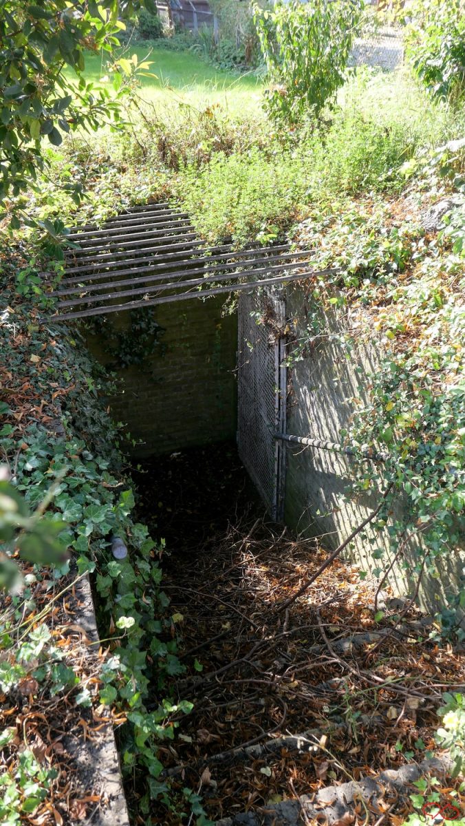 Tegenover de ingang ligt nog een ingang. Die is niet in gebruik, helemaal overwoekerd.