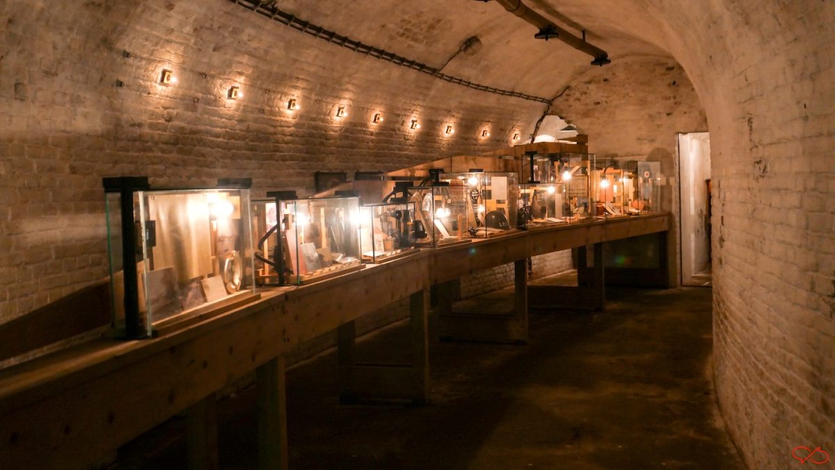 Het is vochtig in de ondergrondse ruimtes. Eigenlijk geen plaats om een museum in te richten. Vocht dringt overal in door en tast alles aan. Rotting, schimmel, roest en andere narigheid. Over een paar jaar zou er niks over zijn van de collectie. Maar het is geconserveerd. Echt afgesloten van de lucht en het vocht. Paul Tieman is de ontwerper van de tentoonstelling. Hij heeft een deel van de collectie verpakt in dubbel glas. Precies zoals dat ook in huizen zit. De twee glazen platen zijn luchtdicht en vochtbestendig aan elkaar gemaakt. Met de papieren in de tussenruimte. Het ziet er na jaren nog uit als nieuw. Ook de vitrines zijn speciaal voor deze situatie gemaakt. Met verwarmingselementen die de lucht op constante temperatuur houden zodat condens geen kans krijgt. Prachtig gedaan!