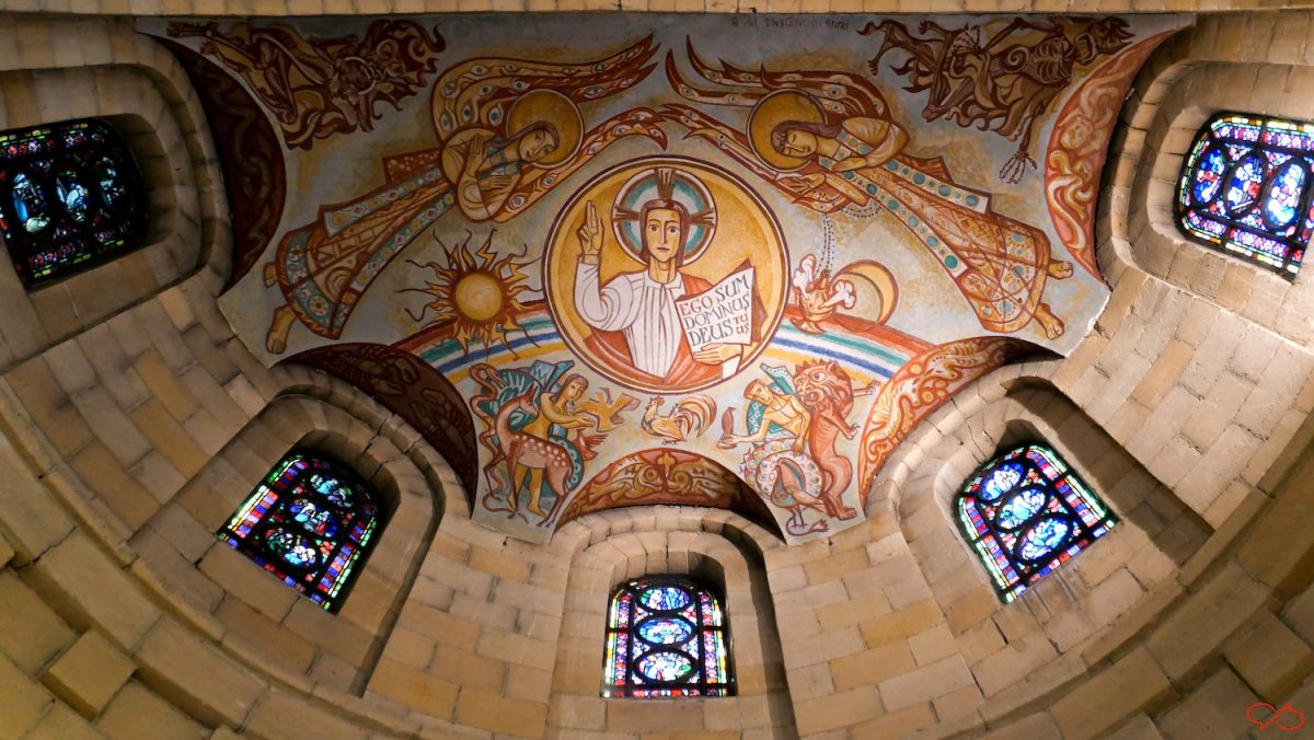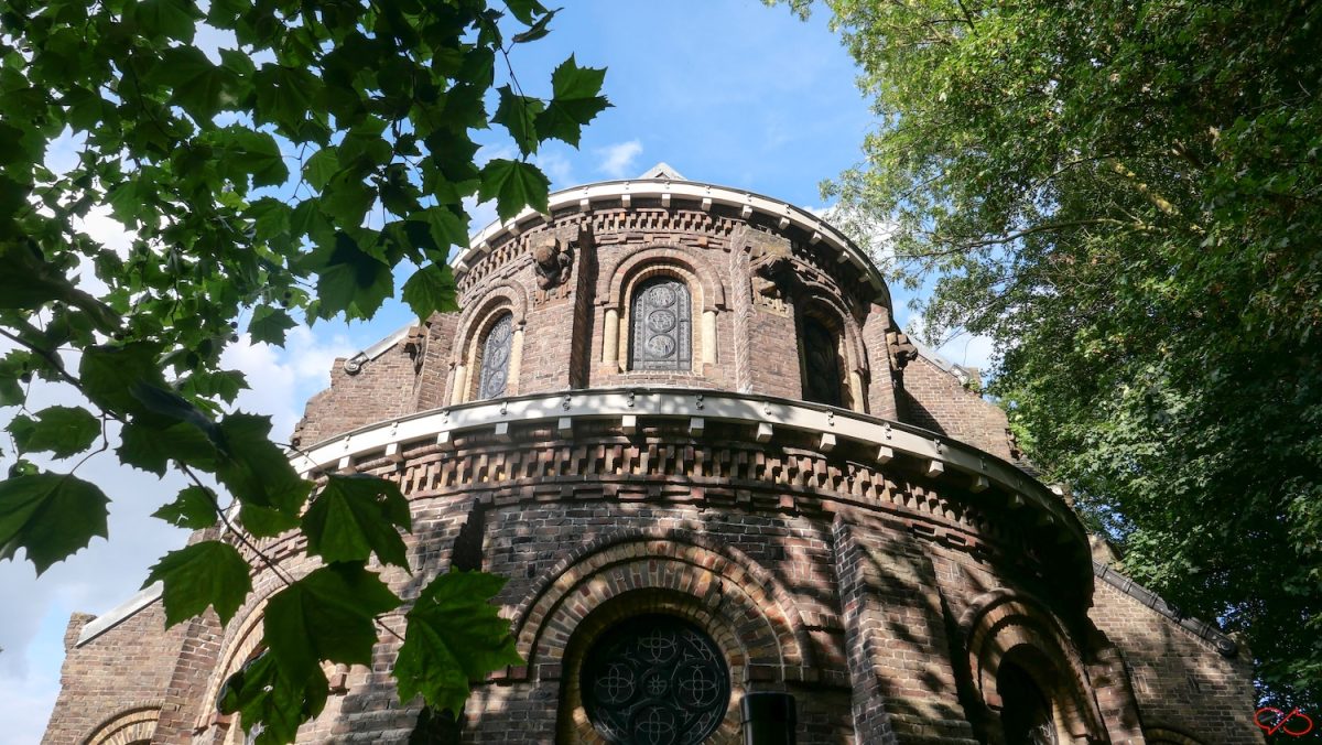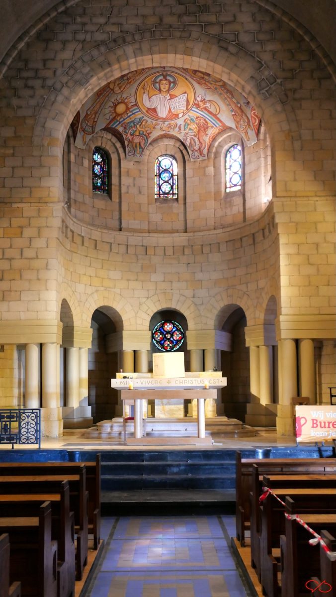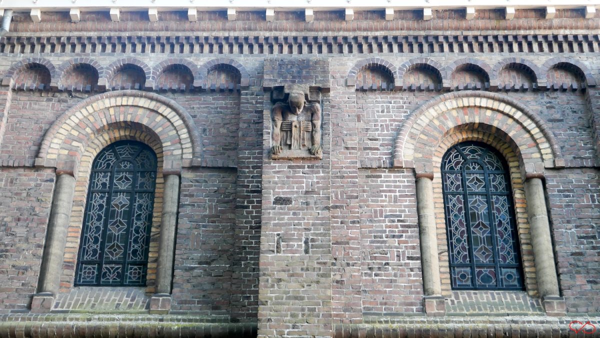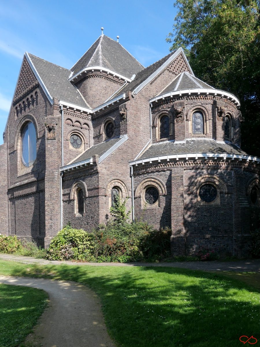 Ik was er al met de Open Monumentendagen, toen kon ik alleen de buitenkant zien, vandaag kon ik binnen. De kapel van het klooster Opveld in Heer. Die is in 1910 gebouwd door de Maastrichtse architect Theophile van Kan die helaas een paar jaar later omkwam door een ongeval. Hij bouwde dit toen hij 27 was, dan ben je als architect echt nog een groentje. Maar hij niet. Wat een schoonheid, rijkdom en originaliteit. Ik ben nog steeds erg onder de indruk.