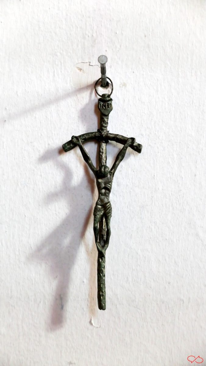 De laatste foto is een kleine crucifix, ergens aan een muur. Zo’n tien centimeter groot.