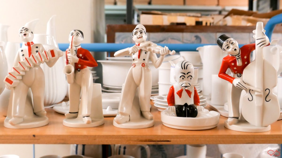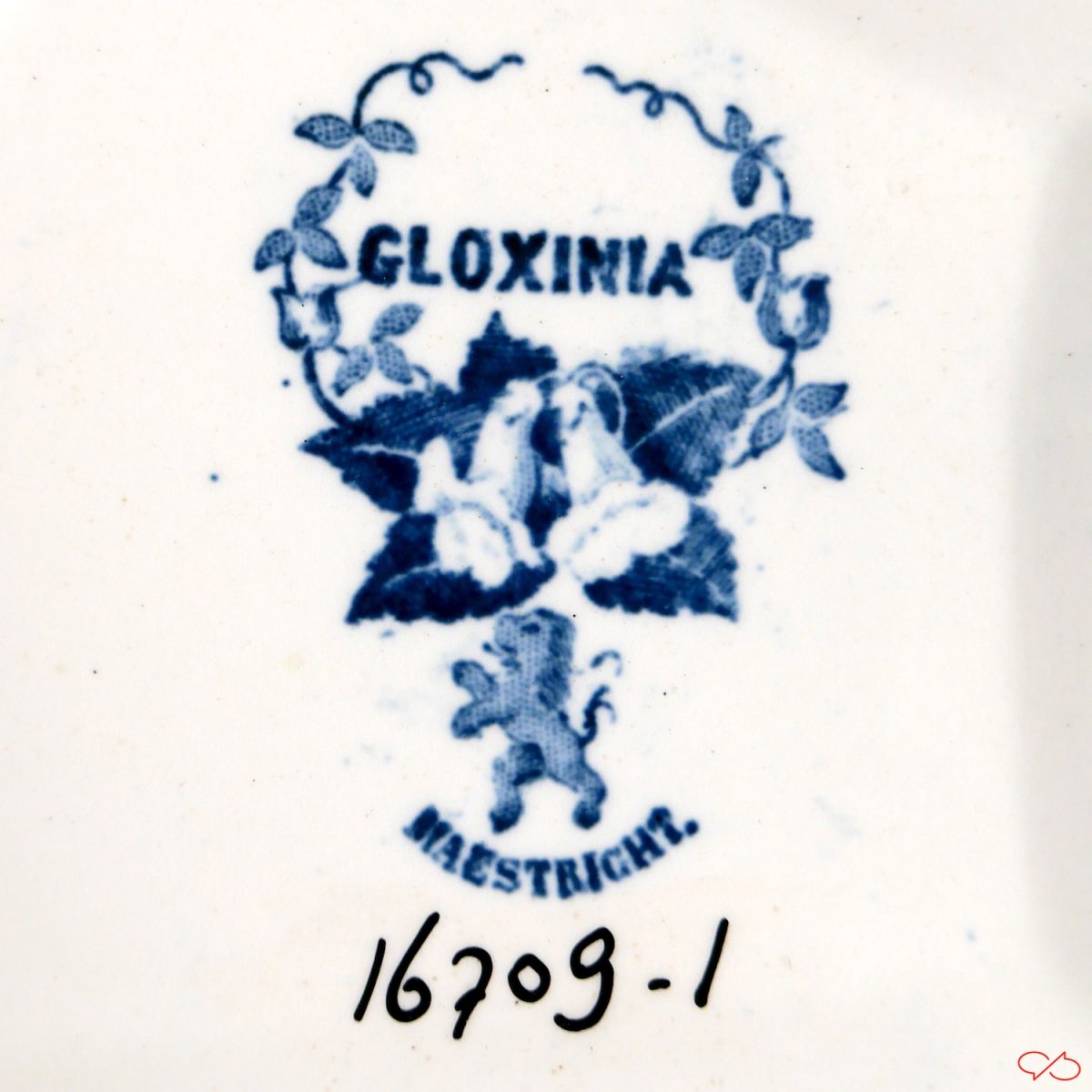 Er ligt werkelijk een schat aan keramiek. Het stempel met Gloxinia is van Société Céramique, kort na de oprichting van het bedrijf in 1863. Het verwijst niet naar de plant, maar naar een waterhouder in blauw met het decor Gloxinia. En een prachtig stenen orkest.