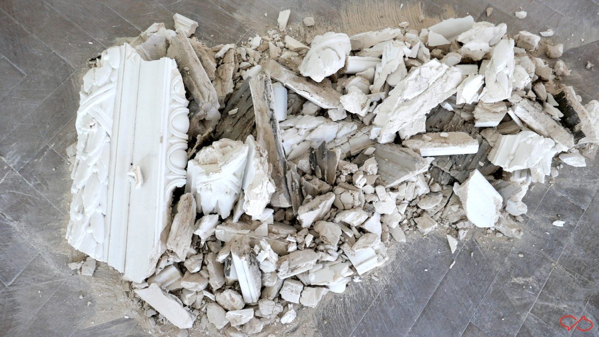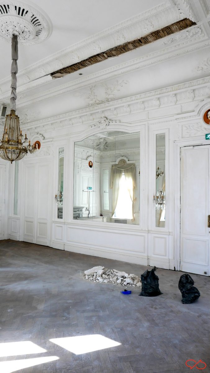Dus naar de Witte Foyer. Moet je kijken naar het plafond. Hele stukken stucwerk losgelaten. En er zit nog meer los, het zal binnenkort wel naar beneden komen. Ik herhaal mijn oproep aan de Mestreechteneere: laat je stem horen. Deel dit bericht en laat zien dat het hoog tijd wordt voor de politiek.