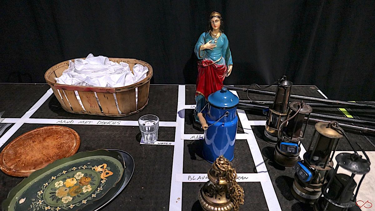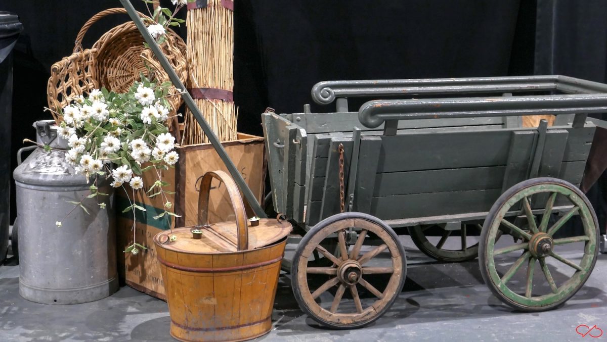 De rekwisieten. Achter het podium, onzichtbaar voor het publiek, liggen alle mogelijke rekwisieten. Het verhaal speelt zich af rond 1914. Natuurlijk de fiets van de kapelaan. En een melkbus, een houten emmer, een (honden)kar, een heiligenbeeldje, mijnlampen, een bakkerskar vol brood, mattenkloppers en natuurlijk een groot aantal oude fietsen. Er staat zelfs een pracht van een oldtimer.