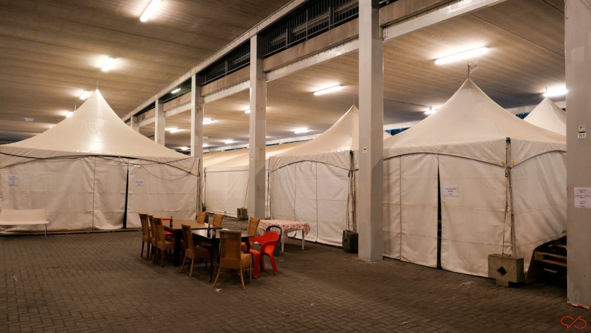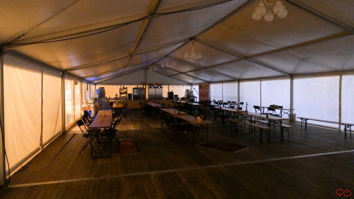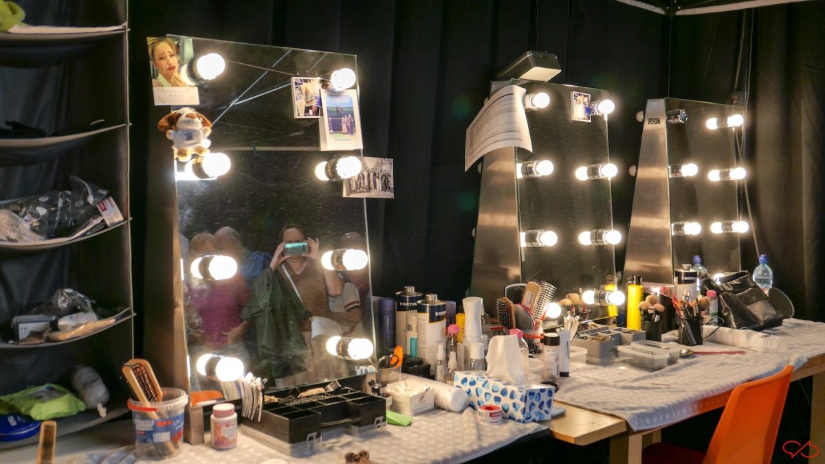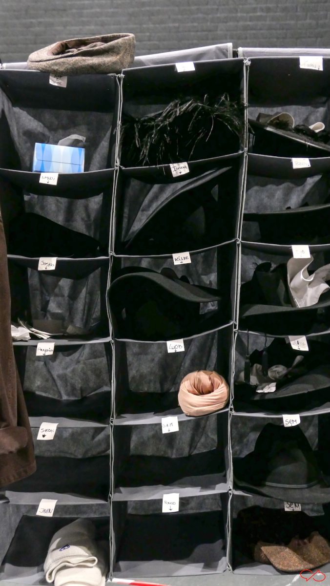 De organisatie. Het verhaal moet in korte tijd verteld worden en dus is de organisatie erg strak. Een kast met hoofddeksels ingedeeld op naam, een schminktafel, wat wensen voor de spelers (ik zou de tekst maar even lezen). De kleedkamers zijn in tenten. Het is logisch dat ik binnen geen foto’s mocht maken. En er is een grote tent voor de catering.