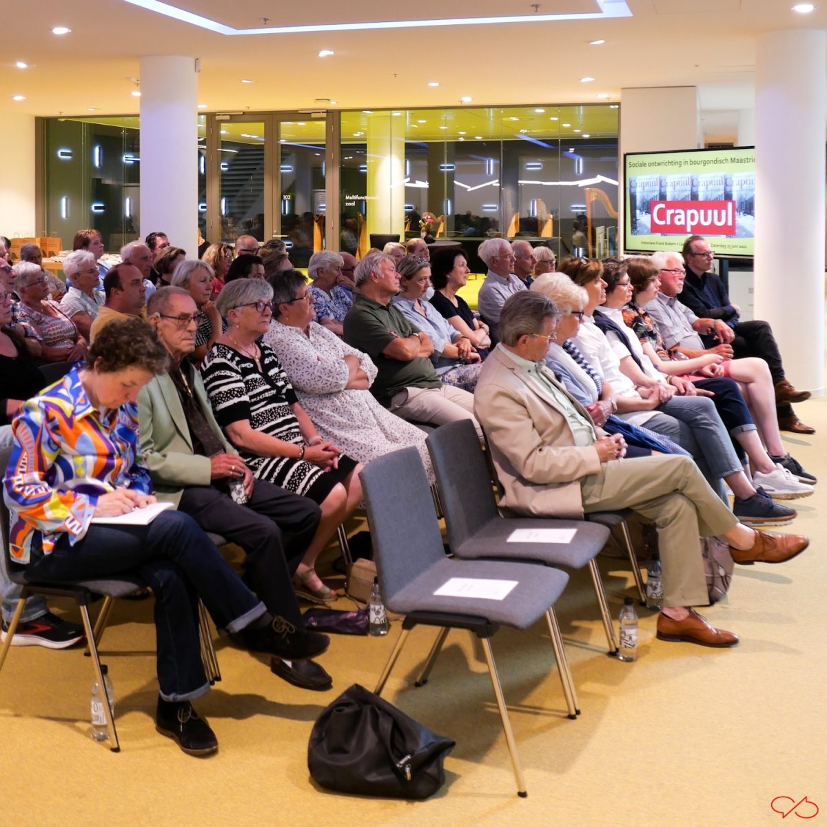 Crapuul is een van de meest belangrijke boeken over de geschiedenis van de stad, omdat die hiermee zo grondig en gedetailleerd beschreven is. De schrijver, Frank Bokern, zou worden geïnterviewd door historicus Joes Minis. Omdat ik erg onder de indruk ben van het boek, wilde ik dat interview graag bijwonen. En met mij veel voormalige bewoners van de Stokstraat of hun nazaten, ze zaten op de eerste rijen. Het werd een bijzonder interessant gesprek over de Stokstraat, de bewoners, de industrialisatie. Met scherpe woorden voor de rol van Regout, de Maastrichtse politiek en de katholieke kerk. De conclusie van het gesprek was vooral dat er uitgezien wordt naar excuses en rehabilitatie. Wilt u weten waarom? Dan raad ik u het boek aan!