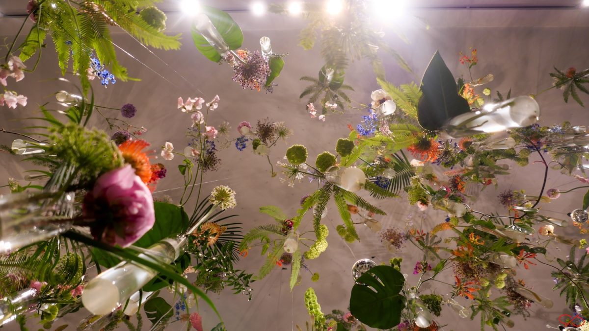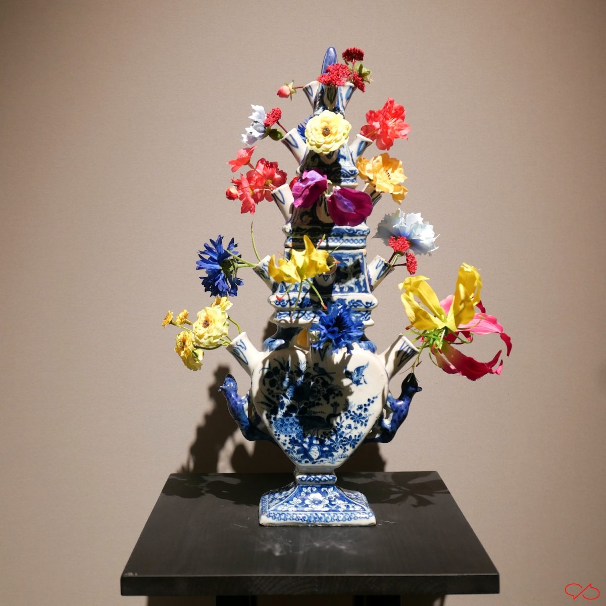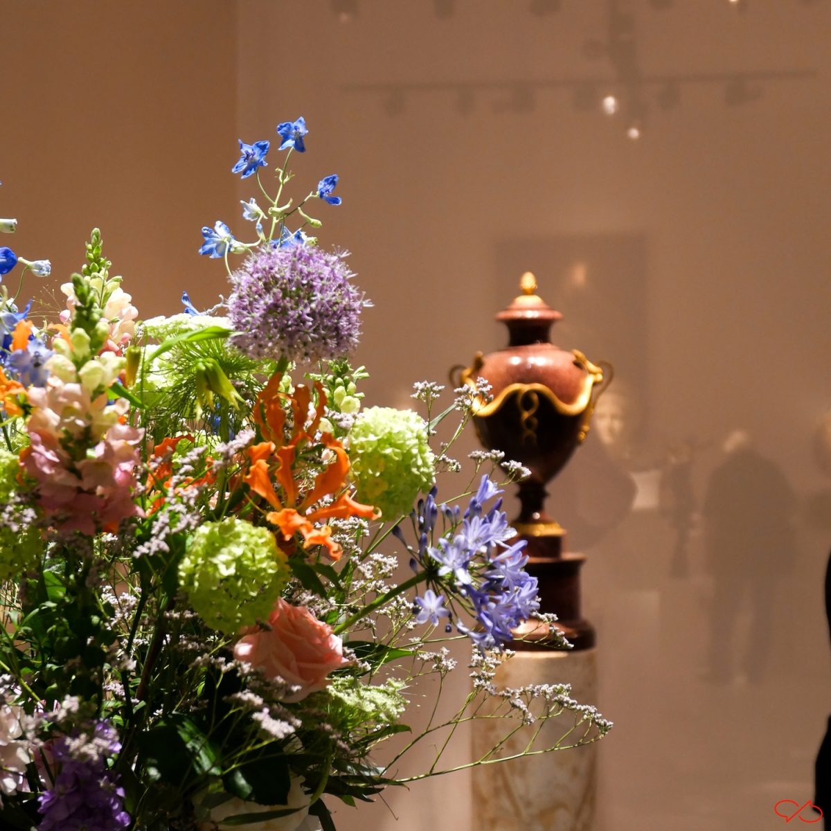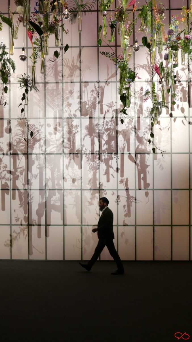Ik ben wel eens vaker in de hal geweest. Betonnen vloer, golfplaten plafond, dikke buizen voor luchtverversing. In enkele weken wordt het omgetoverd tot een van de meest luxe musea ter wereld. Eindeloze gangen met kunstgalerijen. De combinatie bloemen en kunst is heel apart. Het schilderij met de jachtattributen is een trompe l’oeil, gezichtsbedrog. De voorwerpen lijken echt, maar ze zijn geschilderd