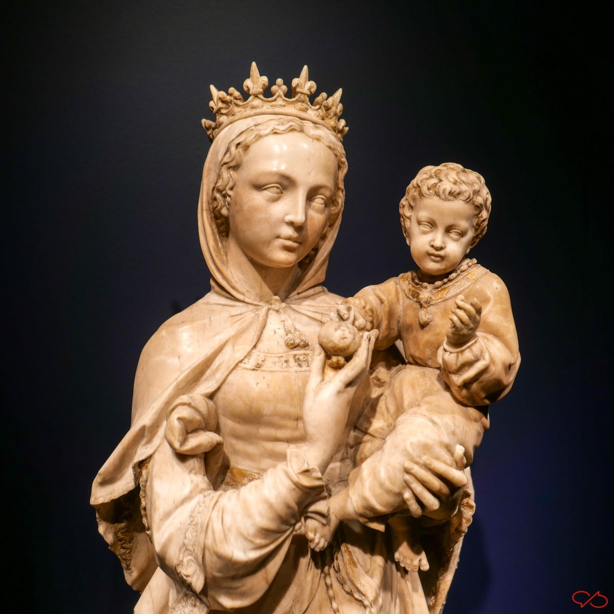 De kunst. Er is van wel 7000 jaar kunst te zien. Uit alle streken van de wereld. We zien een angstwekkend reliëf van Medusa. Kijk haar niet aan want je versteent ter plekke. De madonna met het kindje hebben dat kennelijk wel gedaan. Kijk die details in het marmer eens. Verder een modern collier van diverse kleuren edelstenen. Of zo’n ongelooflijk lief tulpenvaasje, na al die eeuwen nog steeds een pronkstuk.