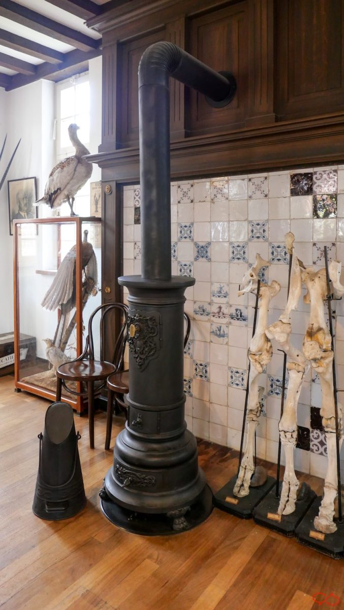 Er staat een ijzeren potkachel zodat er gestookt kon worden. Een wat vreemde opvatting over klimaatbeheersing.