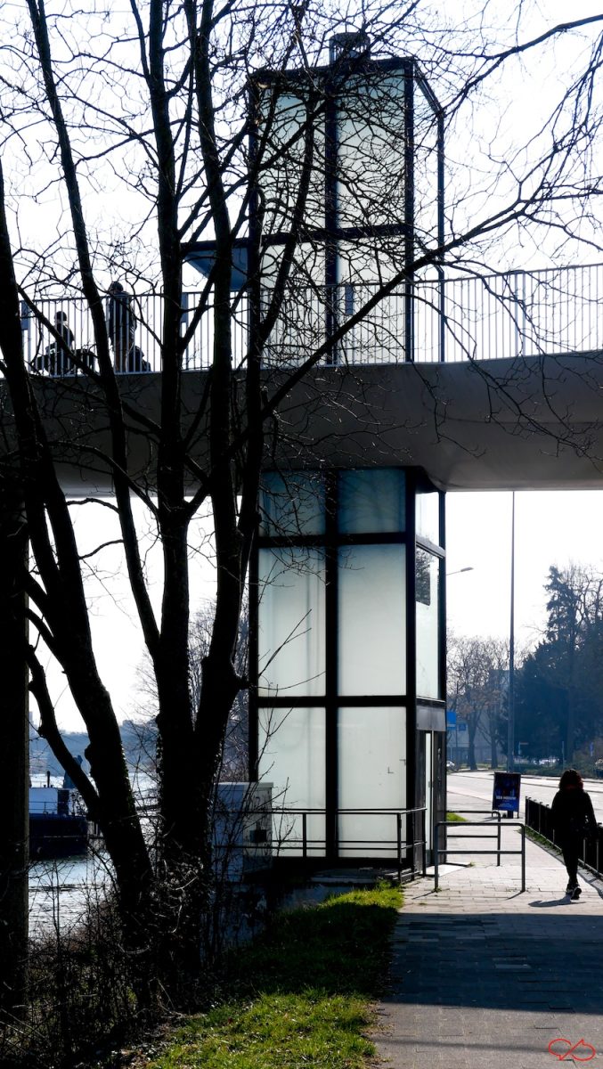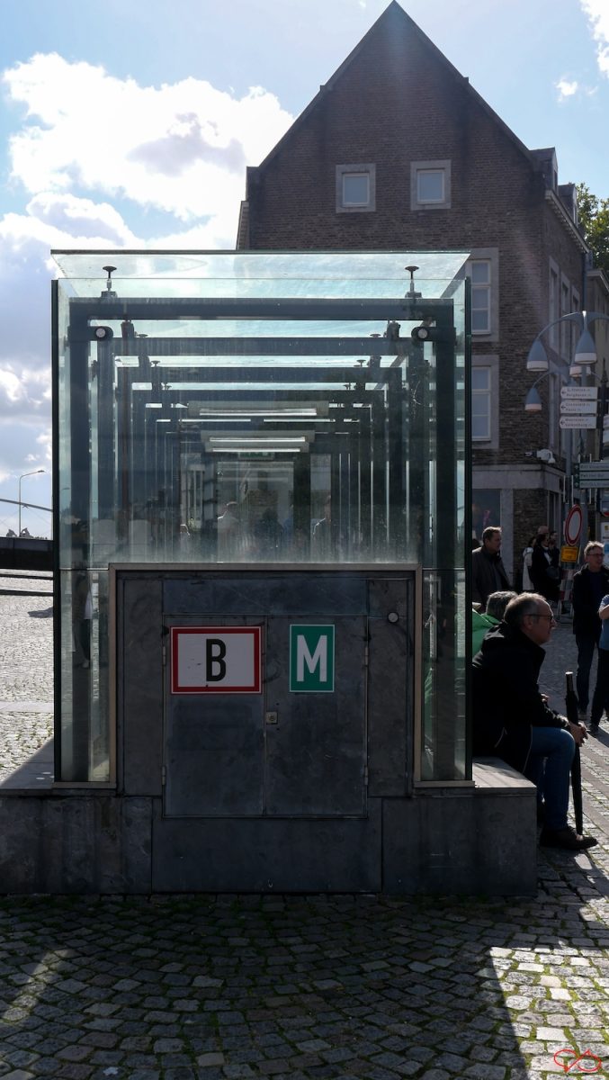 We zien de ingang van de parkeergarage van Onze Lieve Vrouwewal, de liftschacht van de Hoeg Brögk, het Mosaleum van het Natuurhistorisch Museum, De lift van de oostelijke ingang van het station en de ingang van de fietsenstalling aan de Maasboulevard.