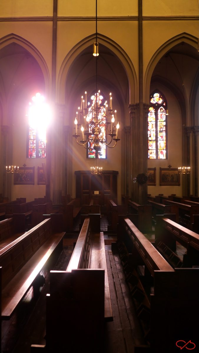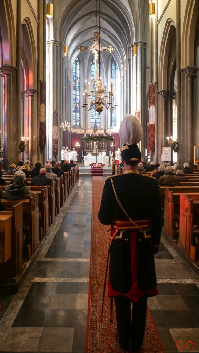 De Sint-Martinuskerk in Wyck. Ik moest er nog even zijn om foto’s te maken in de voormalige doopkapel, het museumpje. Die zit aan de noord-oostzijde. Het licht was bijzonder mooi, zacht en wat warm van tint streek het vriendelijk langs de ingang. Binnen was nog net de mis gaande. En ook daar klaterde zacht winterlicht neer.