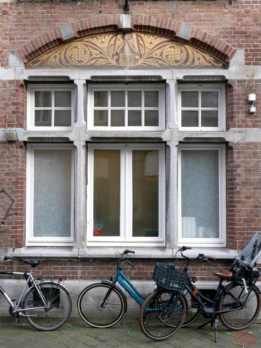 Boven de ramen zijn versieringen, de techniek heet yezeria of sgraffito. Het zijn twee lagen stuc in verschillende kleuren. Na het aanbrengen van de lagen wordt een deel van de buitenste laag weggekrast zodat de voorstelling ontstaat.