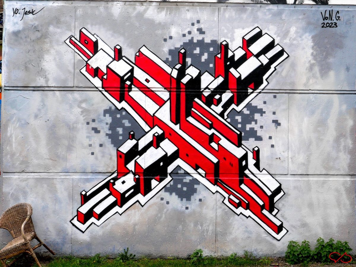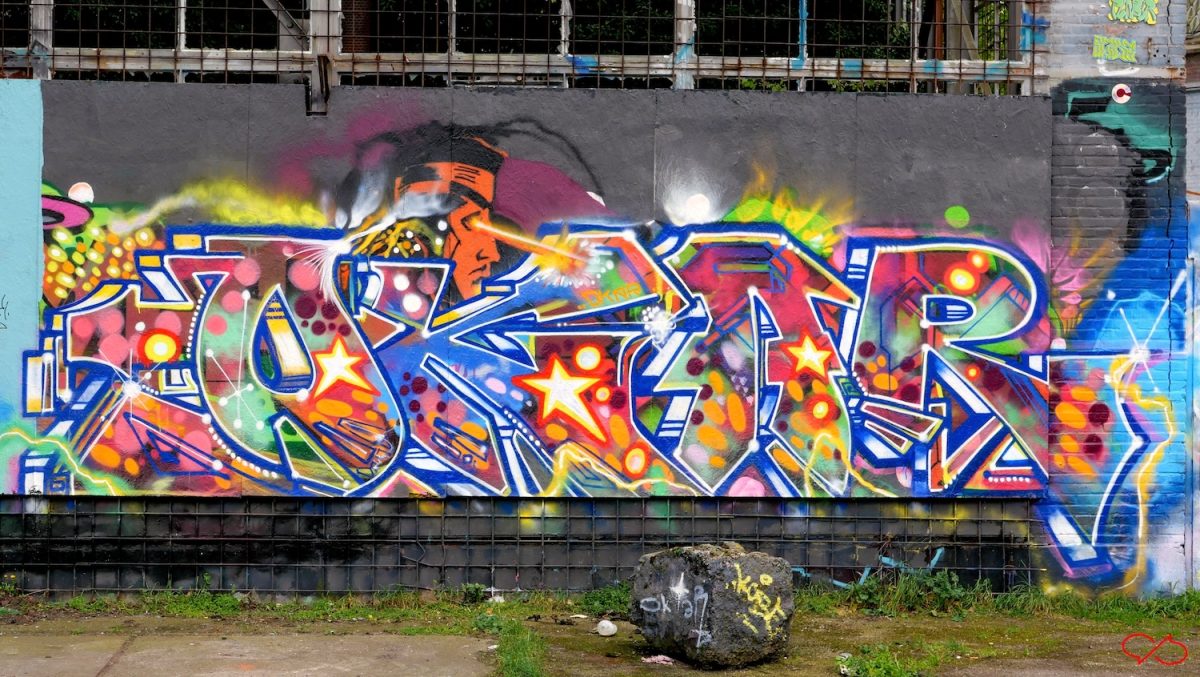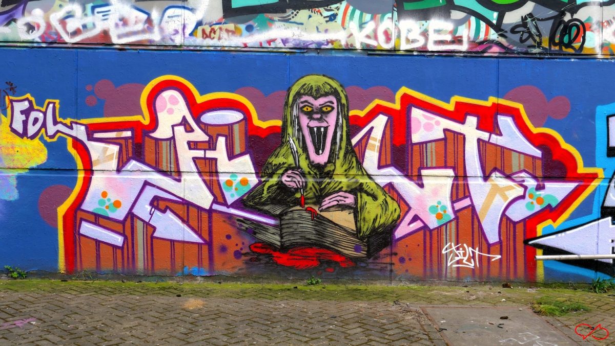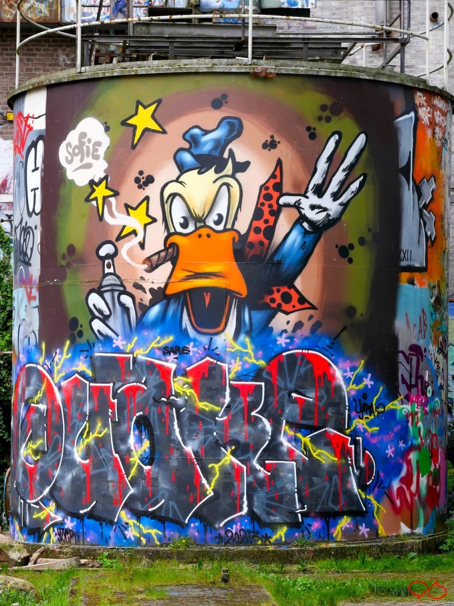 Graffiti aan de muren van het Landbouwbelang in Maastricht. Ik vind het wel spannend.