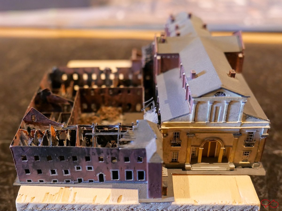 Omdat alle stukken van hun plaats moeten, kunnen we meteen wat details bekijken. Zo zien we Fort Willem vanuit de lucht. Zonder bomen er omheen, het schootsveld van de kanonnen moest immers vrij zijn.