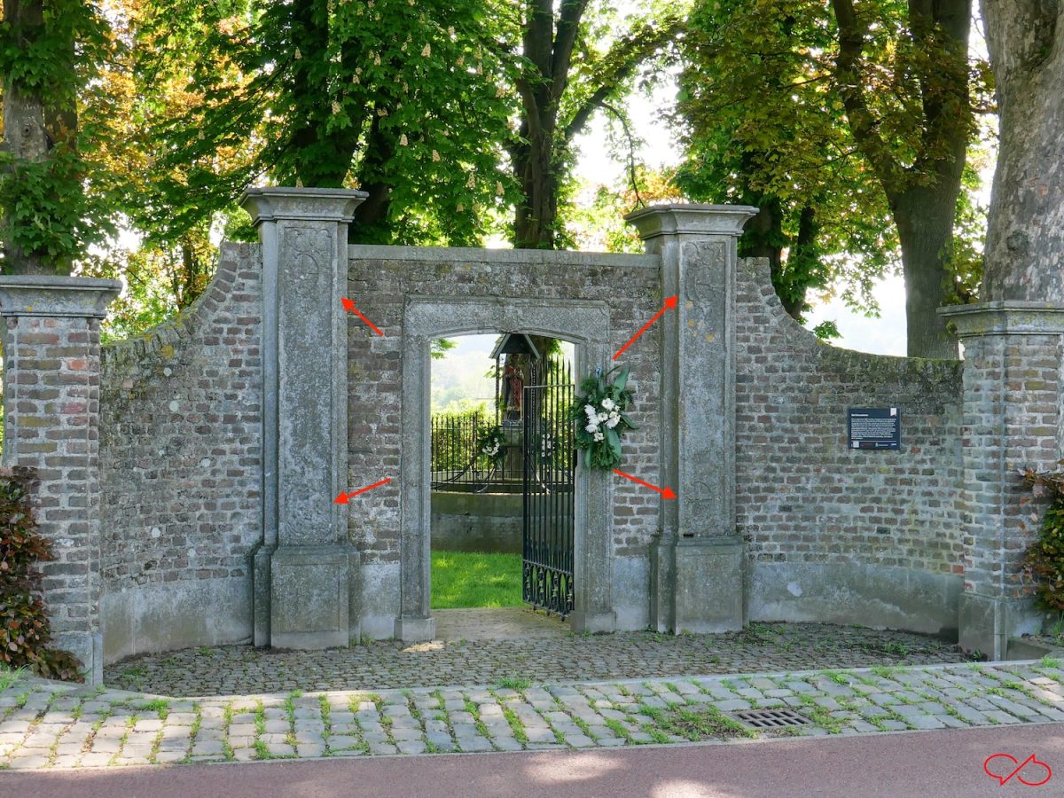 Ik was in m’n fotoverzameling op zoek naar voorbeelden, toen ik de ingang van de Sint-Servaasbron in het Jekerdal weer zag. Met twee pilaren met motif perspectif, boven- en onderaan. Alleen staan de kolommen verkeerd om. De tafelpoot wijst naar boven en de bloemen zitten aan de onderkant. Ooit door iemand geplaatst die het zo mooier vond. En een kniesoor die er op let🤣.