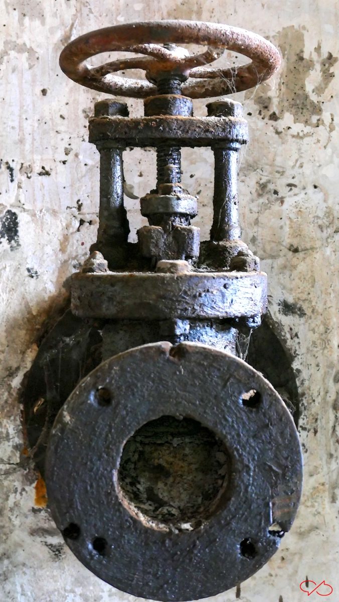 Er zijn nog wat foto’s over die duidelijk maken hoe er in de industrie gewerkt werd. Wielen om aan te draaien en zo iets in te stellen, kranen die open of dicht moeten, buizen met flenzen om er andere buizen aan vast te maken zodat iets van hier naar daar kan stromen. Opslagbekkens om op te sparen wat later ergens nodig was. En mensen die wisten wanneer het ene moest beginnen en het andere moest stoppen. Ze keken voortdurend naar het stukje waarvoor zij verantwoordelijk waren en stuurden zonodig bij. Met spierkracht, in gebarentaal vanwege het lawaai, kannetjes olie en vetspuiten. De werkende mens als onderdeel van het productieproces, verlengstuk van de machine.