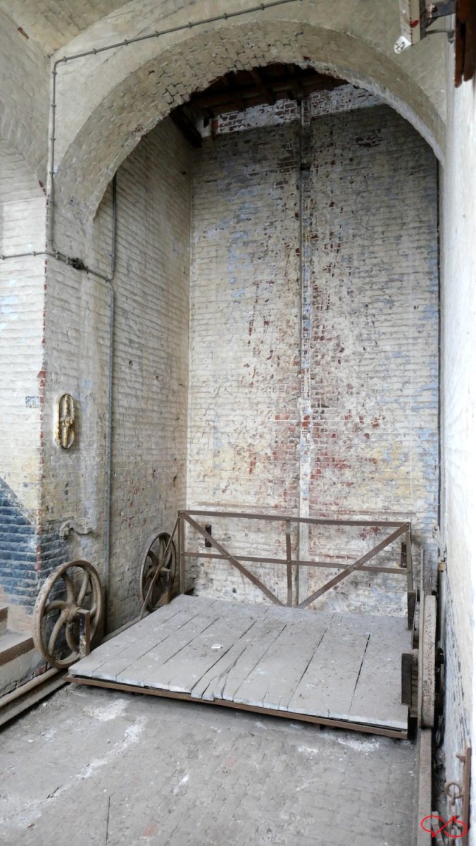 Ik wil de plaatsen laten zien waar de mannen, vrouwen en meisjes werkten. In krappe werkruimtes, donker, met veel lawaai en weinig licht. Op sommige plaatsen was het heet, op andere koud en nat. Waar machines draaiden zonder veel bescherming en waar je zo een paar vingers kwijt was. Een onbeschermde lift (het platform met wielen), het hele platform werd opgetakeld. En waar nauwelijks procedures bestonden over veiligheid en dus ook nauwelijks toezicht. Je keek maar uit je doppen! Harde labeur.