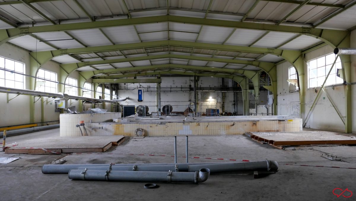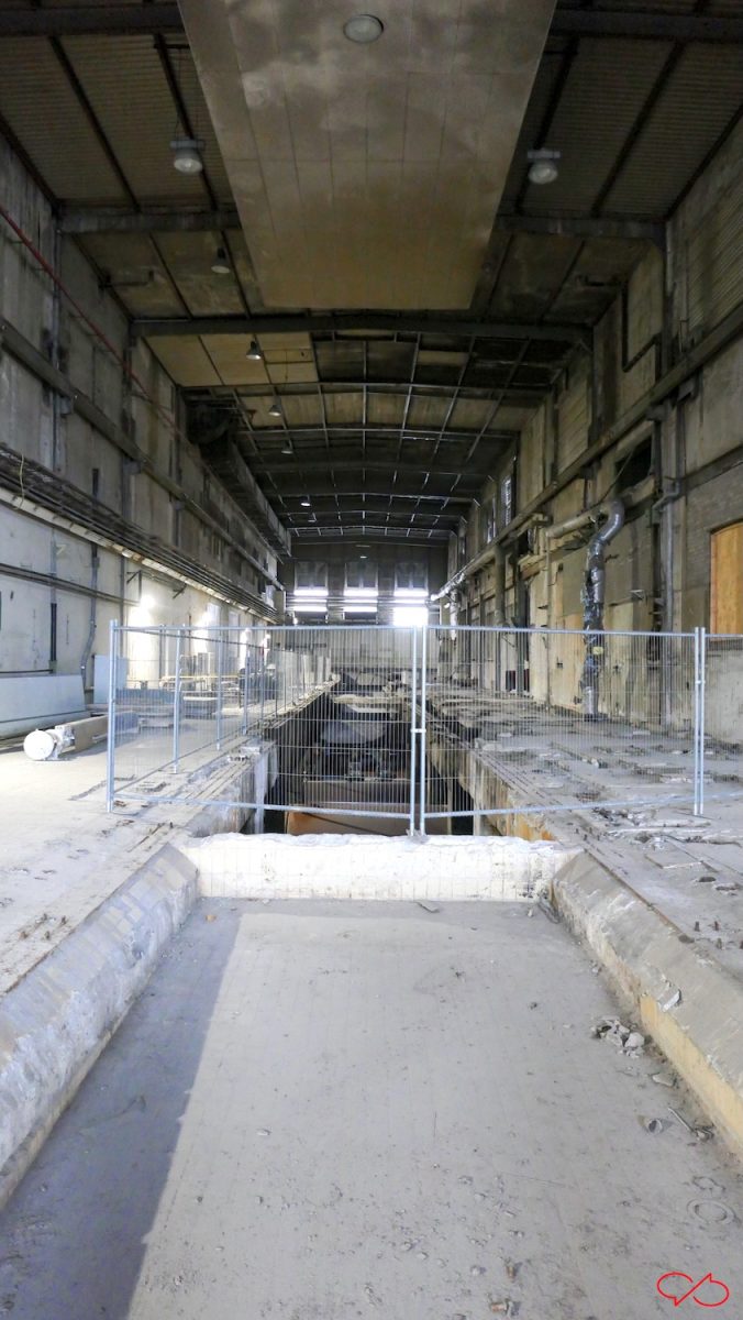 Het oudste deel van de fabriek ligt aan de kant van het Bassin. We zien een stuk van de fundamenten van de commanderij. Het loopt wat op vanwege een hellingbaan naar de stadsmuur, om de affuiten met kanonnen erop naar boven te brengen. Binnen zijn muren met hardstenen raamdorpels en stijlen blijven staan en die zijn opgenomen in het fabrieksgebouw.
