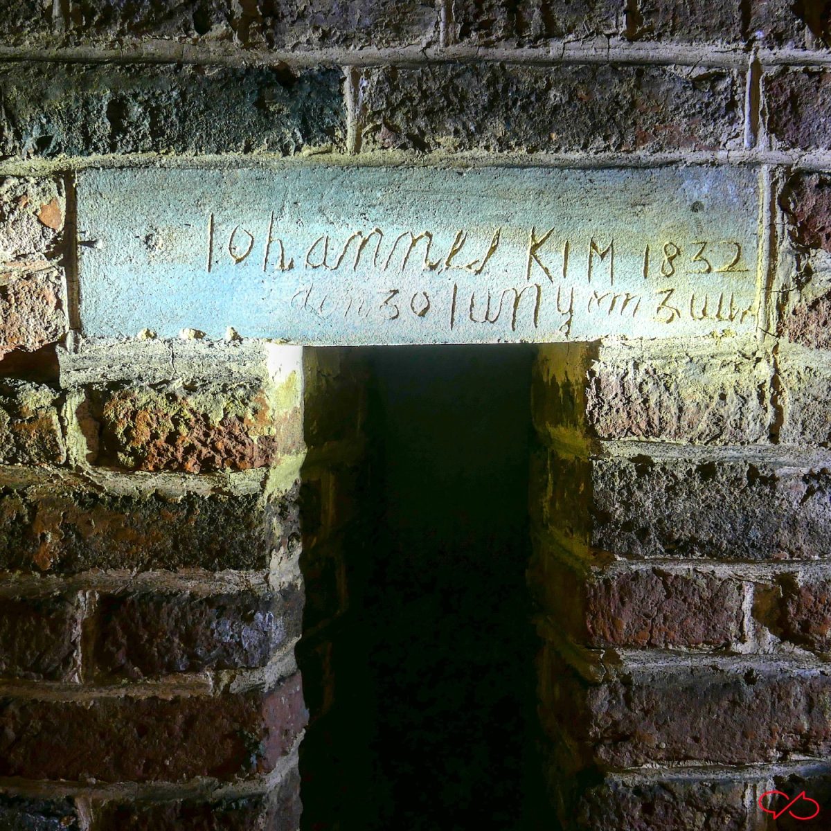 We komen eerst in een ruimte waar uitleg wordt gegeven. Door de gids en met posters aan de muur. Dan gaan we de gangen in. Daar zijn tal van ruimtes met schietgaten. Per schietgat zijn er vier soldaten: schieten, loop schoonmaken, laden, en weer schieten. Zo stonden er honderden, het lawaai en de rook van ontploft kruit moeten verschrikkelijk geweest zijn. Maar het fort is nooit gebruikt voor verdediging. Na Napoleon is er immers tot 1940 geen belegering meer geweest. Boven de schietgaten hebben soldaten hun naam achtergelaten. Johannes Kim was hier op 30 juni 1832 om 3 uur.