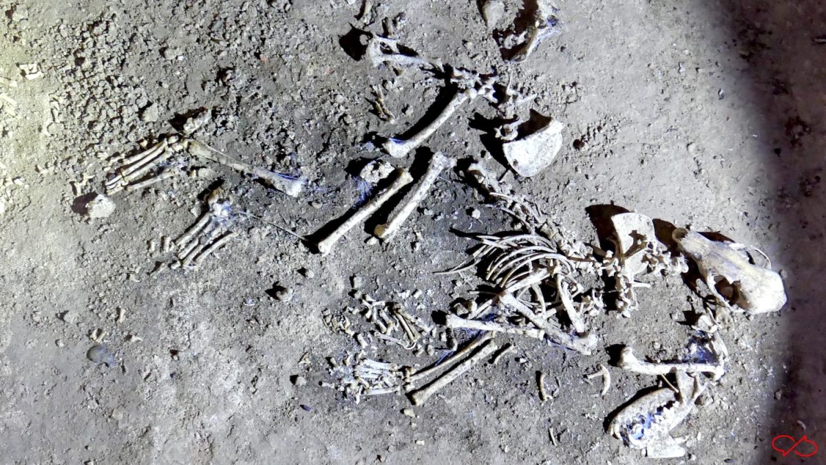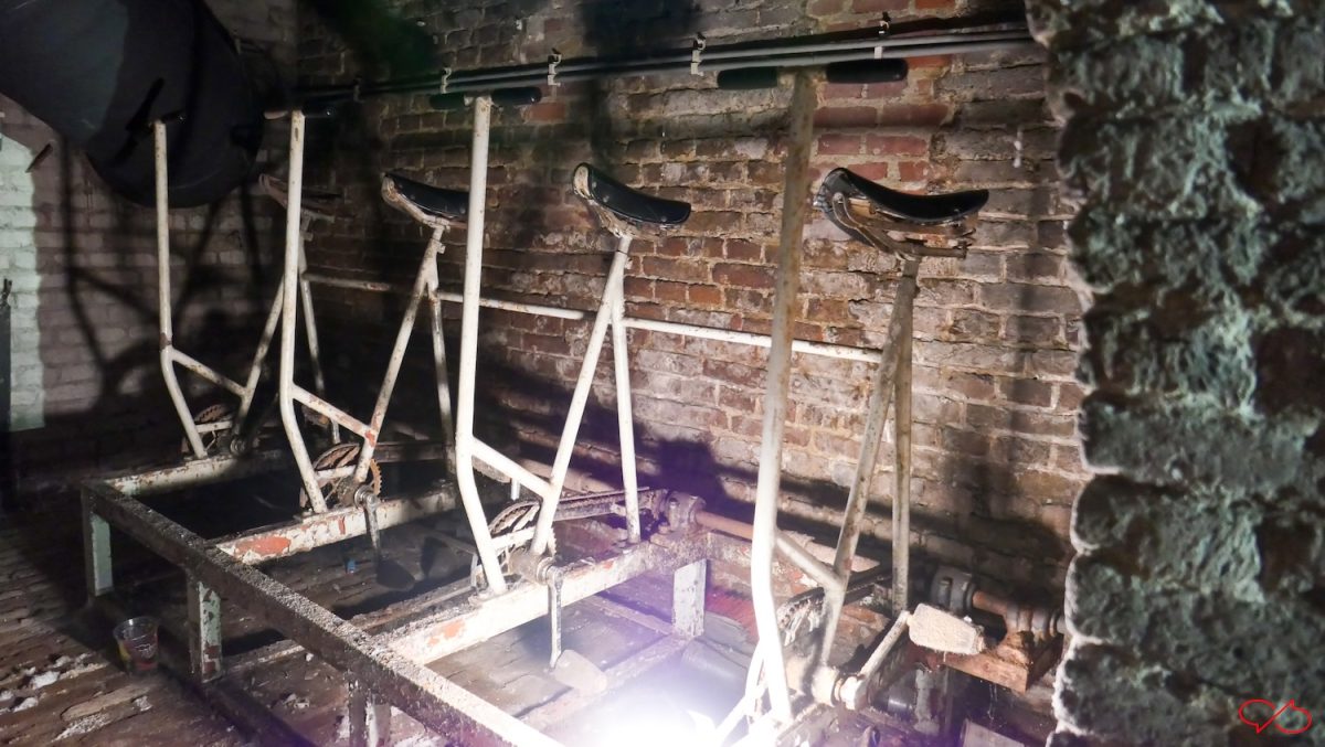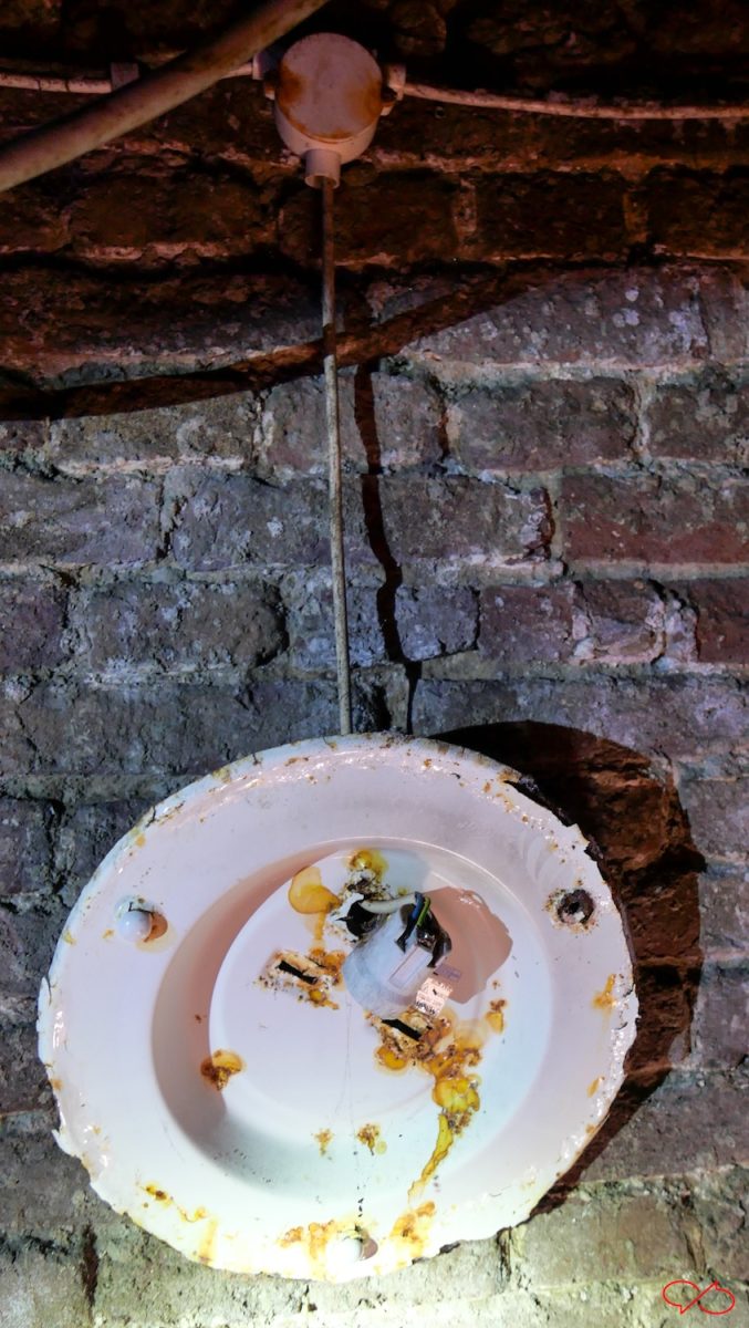 Onderweg waren er natte plekken. Het zwembad dat er boven ligt, lekt. Het is erg slecht voor het metselwerk. Ook liggen er twee skeletten van vossen die de weg naar buiten niet meer hebben gevonden: verdorst. De een in een hoek, de andere is vertrapt door mensen die hier niet hadden mogen zijn.