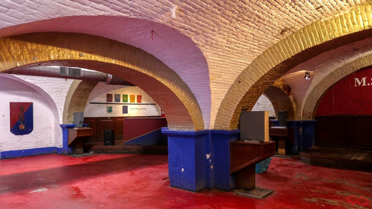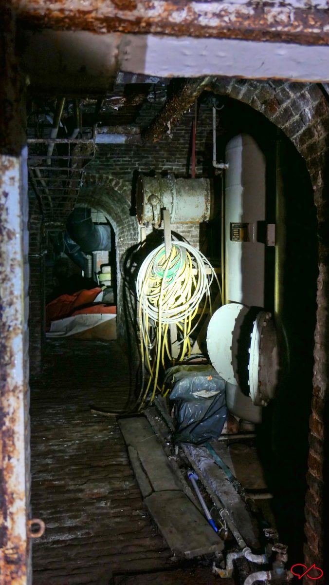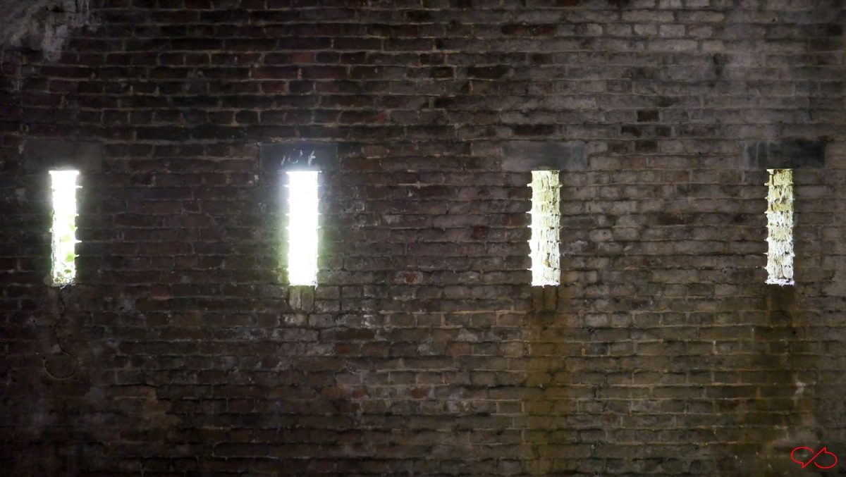 De laatste foto laat de centrale kazemat van binnen zien. De zware bogen en pilaren maakten de ruimte toen nagenoeg bomvrij. Tijdens de oorlog waren hier schuilkelders.
