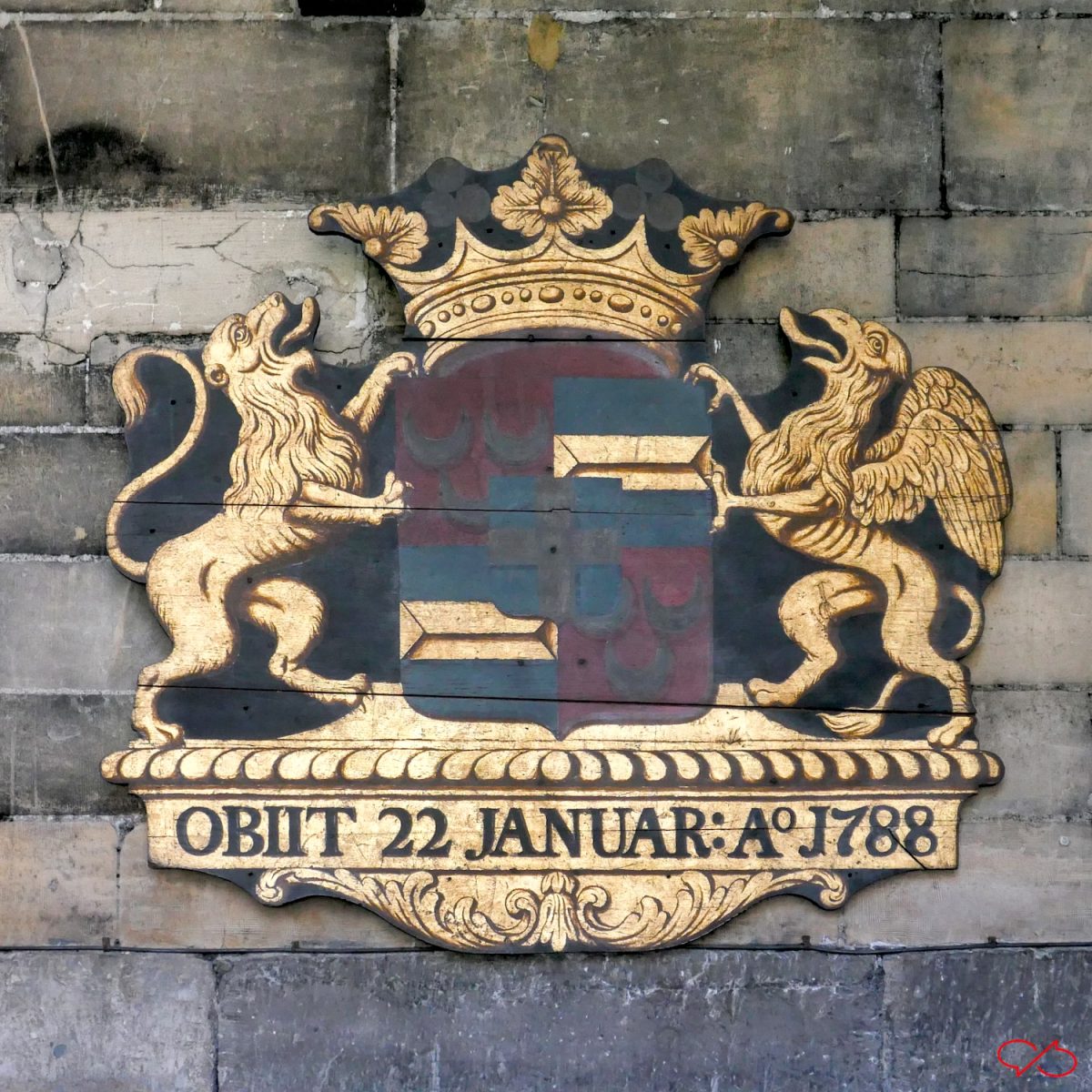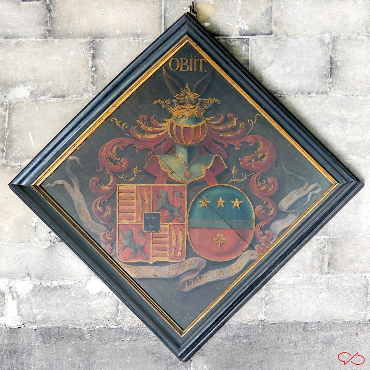 En een laat 18de eeuwse die wel heel modern (voor die tijd) is uitgevoerd. Met leeuw en griffioen als tenant, schildhouders. Het is een van de laatste, in de Franse tijd werd het gebruik afgeschaft.