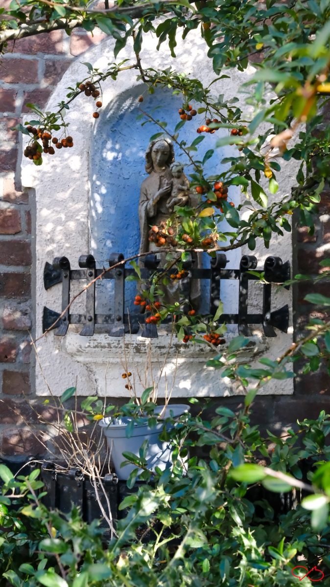 Bij het HCL aan de Pieterstraat vond ik een fotoalbum met foto’s van alle originele beeldjes uit 1947. We kunnen de gevelmadonna’s van toen vergelijken met die van nu.