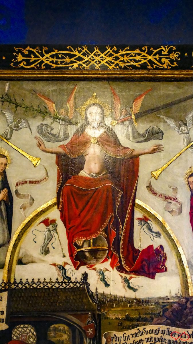 Het hangt in het Maastricht Museum. Het is rond 1475 gemaakt door Jan van Brussel. Het beeldt een rechtszaak uit met Jezus als de hoogste rechter. Linksonder een rechtszaak, aan de rechterkant het vonnis: de hemel of de hel.