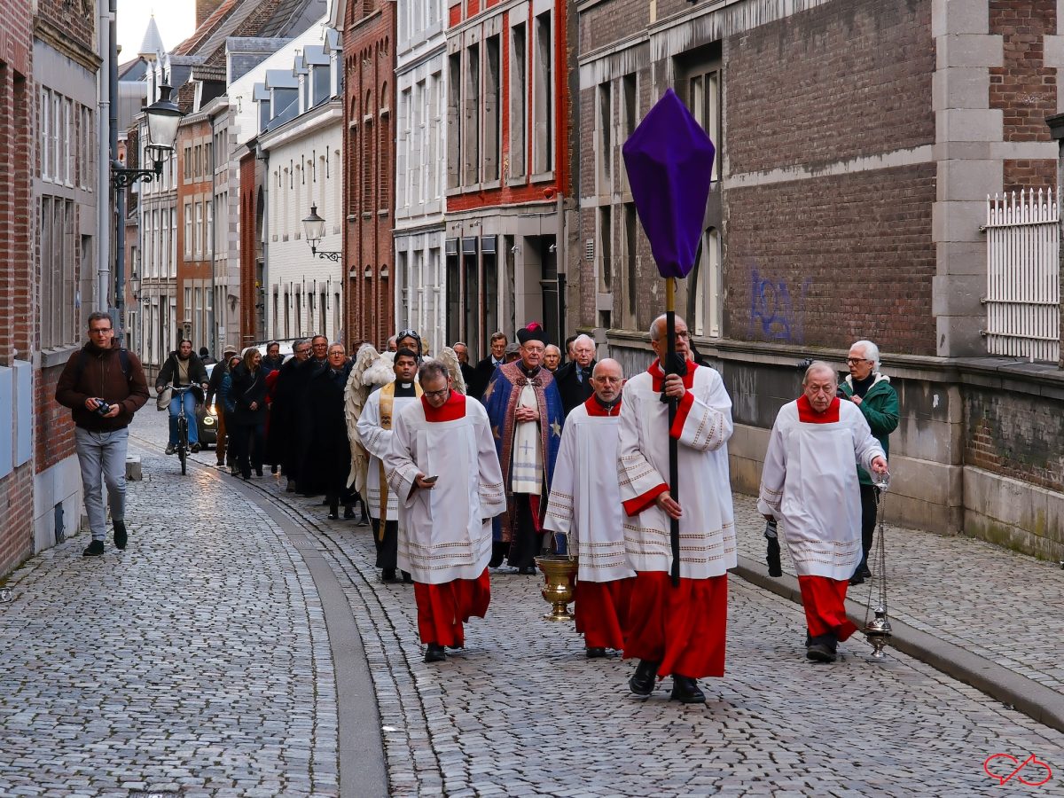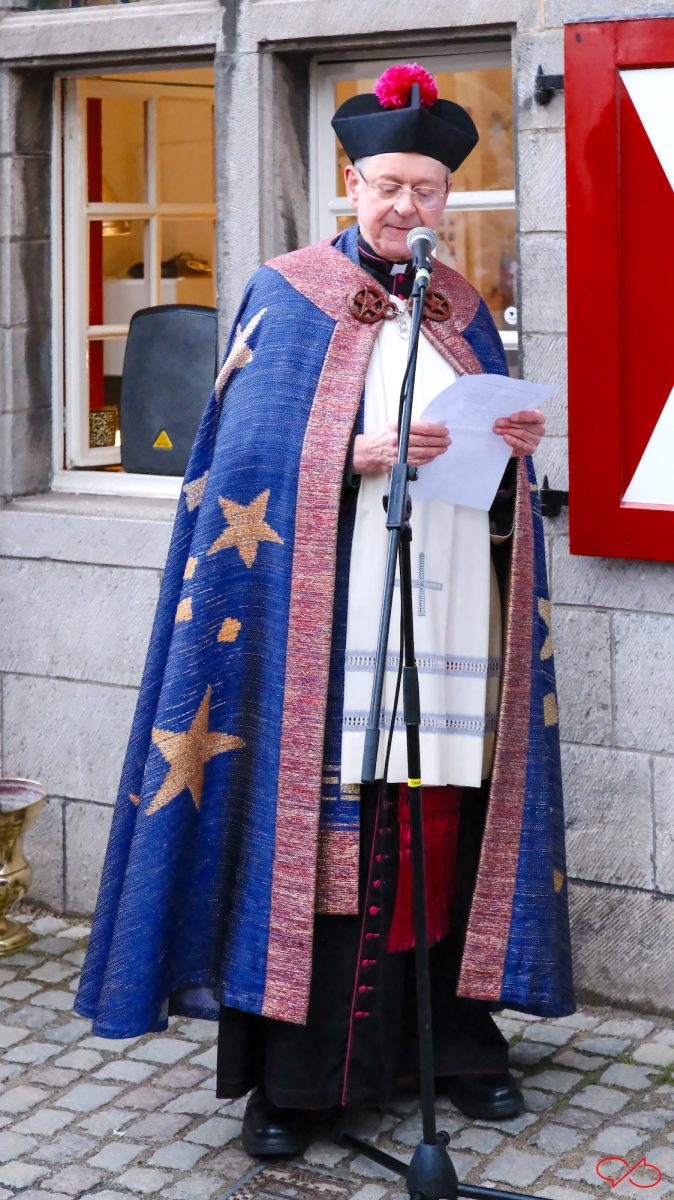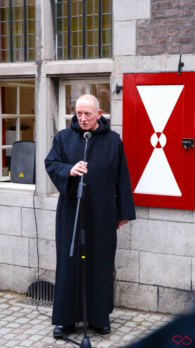 In de Bidweg van de Sterre der Zee ontbreken twee beelden en nu nog maar een. Want vandaag is met een korte plechtigheid het nieuwe beeld in de nis van de Toneelacademie ingezegend. We zien pater Jan Vries met wijwaterkwast en wierookvat. Dit beeld zal worden beschermd door de studenten van de Toneelacademie.
