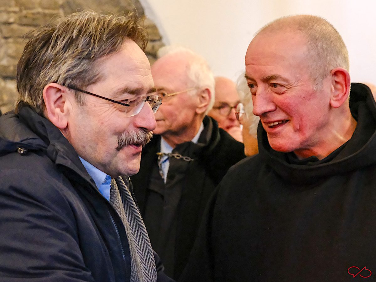 Het beeld is gemaakt door Leo Disch OSB, benedictijn uit Mamelis. Hij heeft naar oude foto’s dit beeld gemaakt. De Broederschap, met name Harrie Theunissen, heeft er veel werk aan gehad om dit tot stand te brengen. We zien hem, pastoor Jan Vries en Leo Disch onder het beeld.